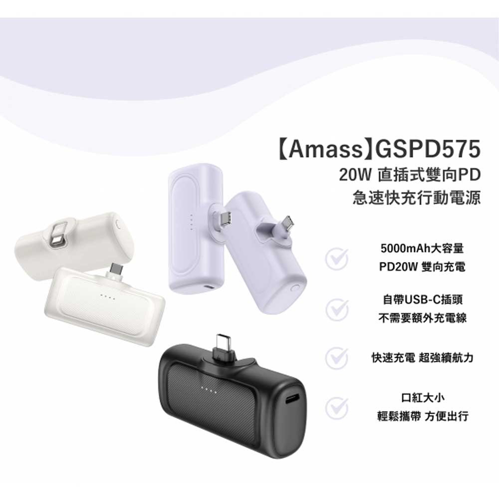 【Amass】GSPD575 – 20W 直插式雙向PD 急速快充行動電源