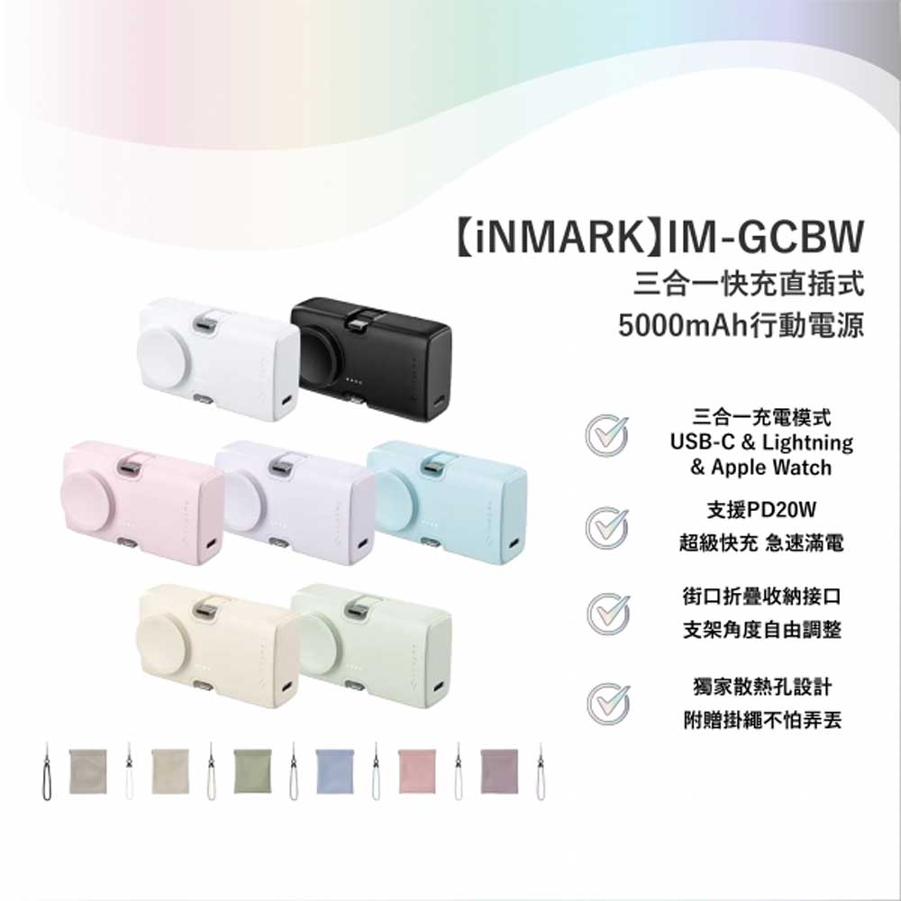 【iNMARK】IM-GCBW-三合一快充直插式5000mAh行動電源