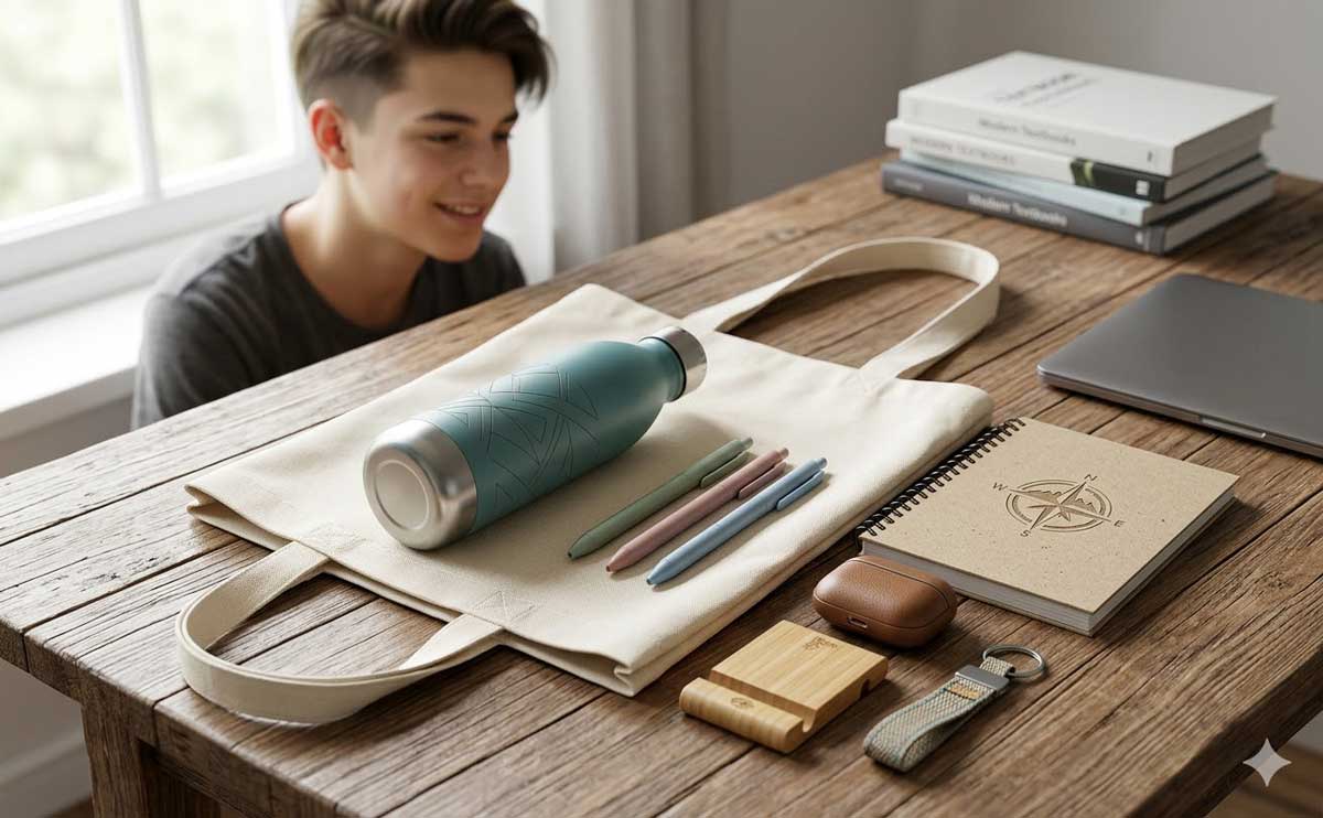 - 莫蘭迪色系帆布袋:選擇加厚的磅數,搭配極簡設計,這不僅是贈品,更是學生的日常穿搭單品。