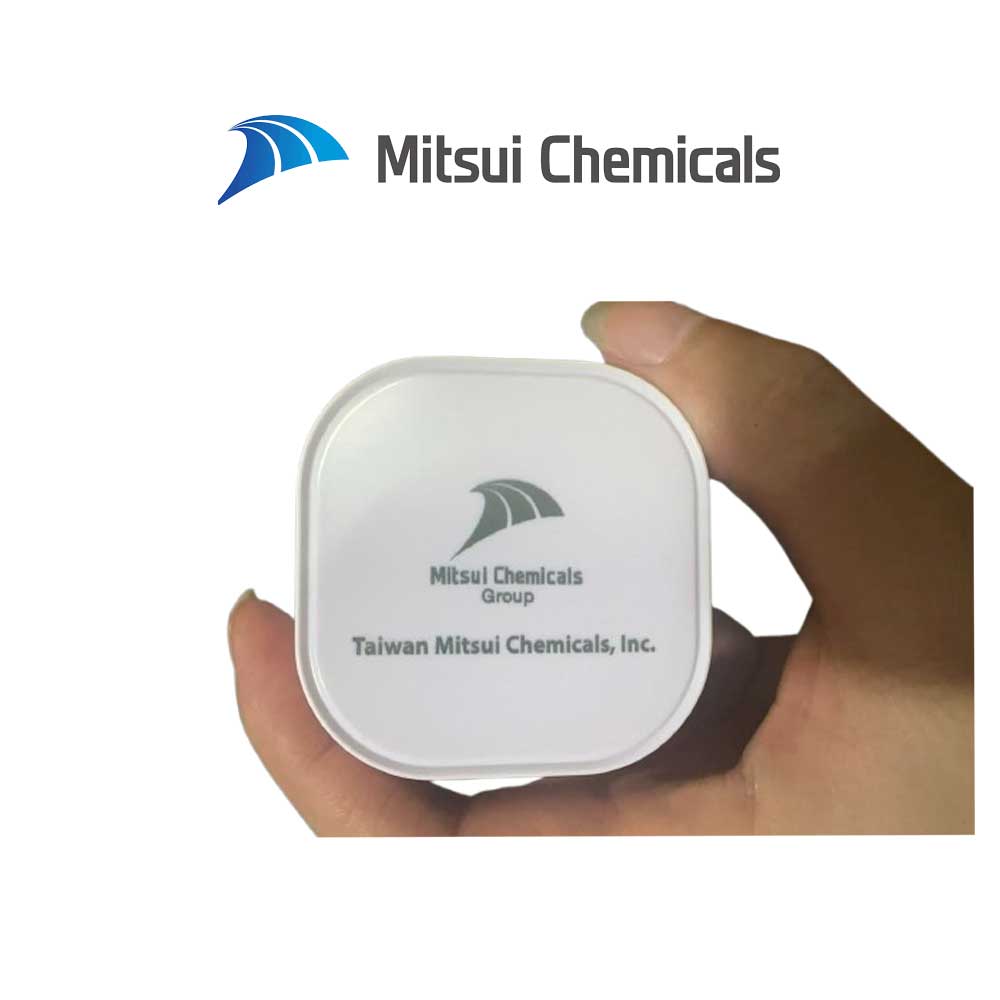 • 品牌視覺化: 方型的平整表面提供了絕佳的印刷空間,將三井化學的 Logo 以精密絲印技術呈現,質感細膩且耐磨損。