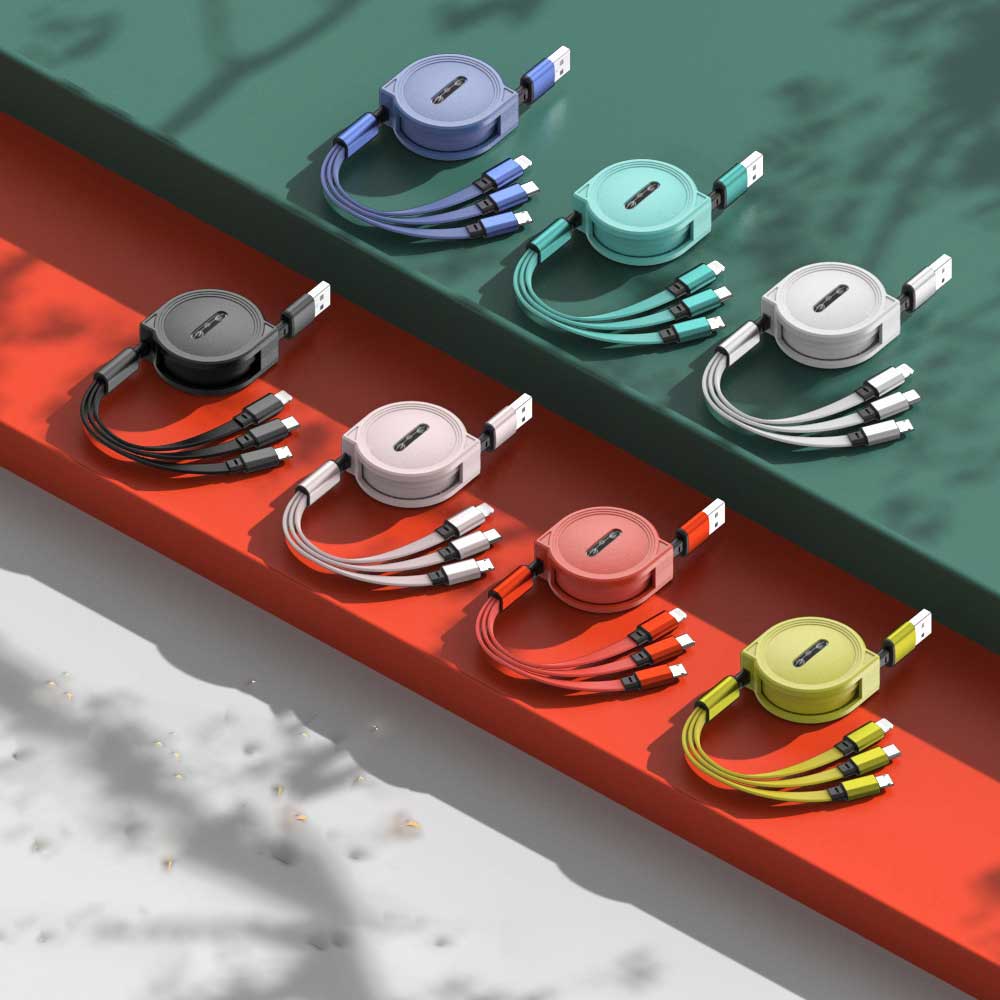 小清新一拖三伸縮數據線