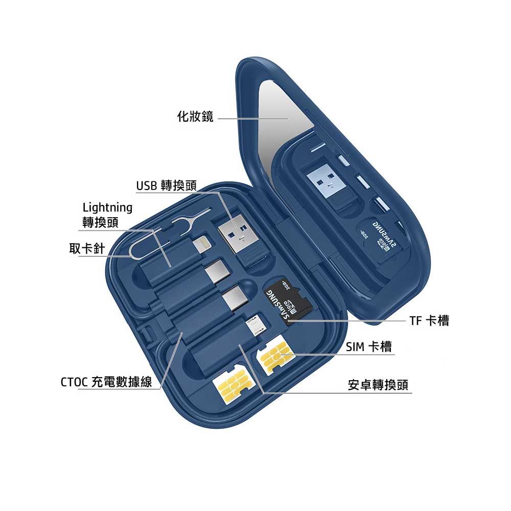60W六合一多功能數據線手機支架鏡子收納盒