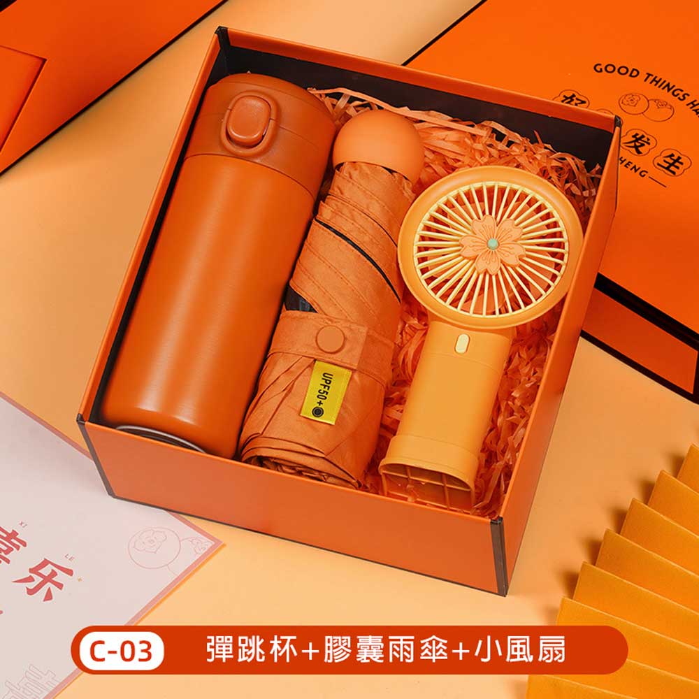 彈跳杯+膠囊傘+風扇禮盒 單價480元*數量100PCS