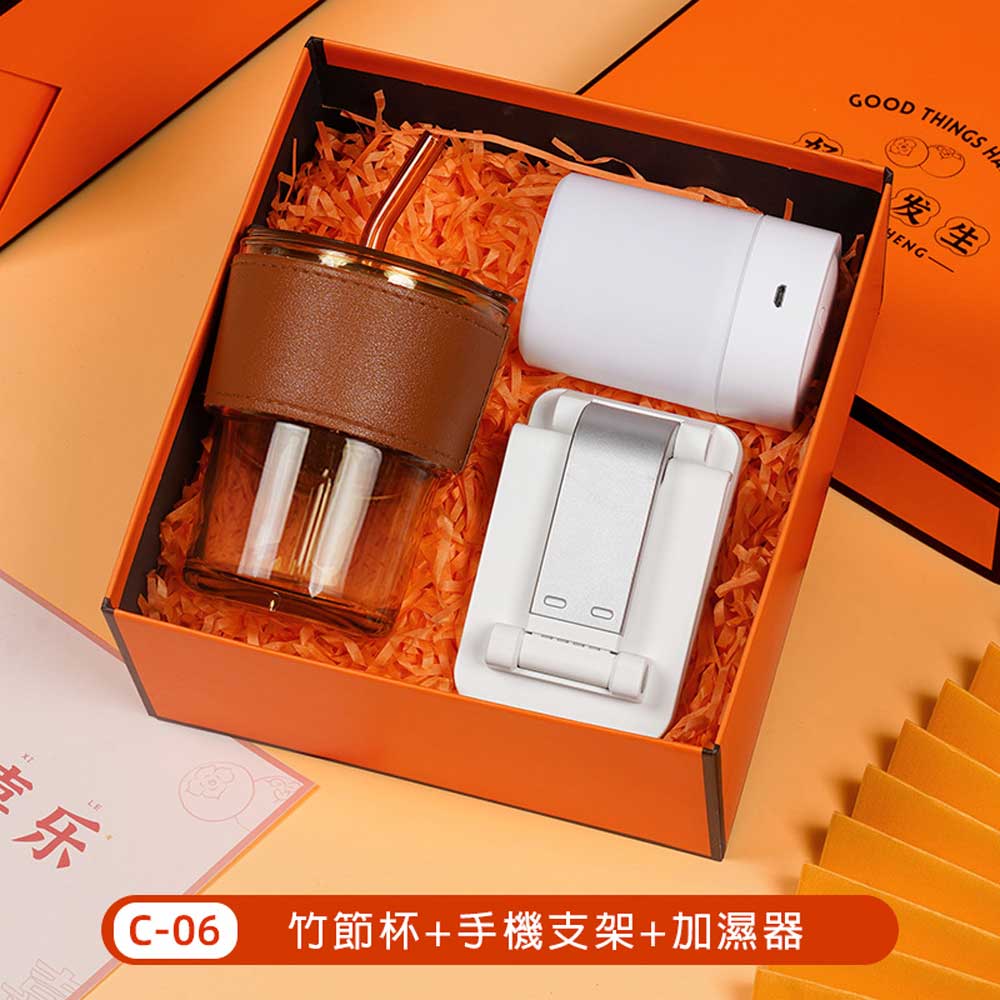 竹節杯+手機支架+加濕器禮盒 單價220元*數量100PCS
