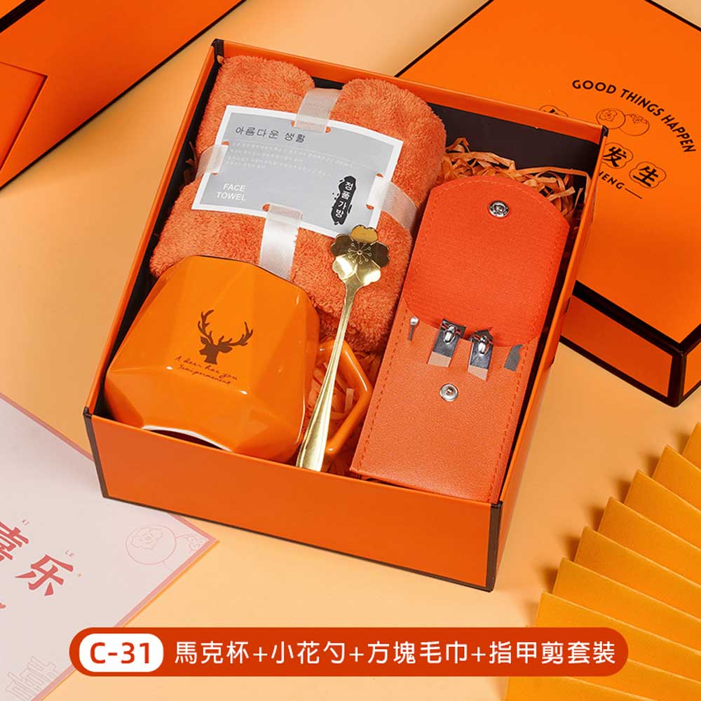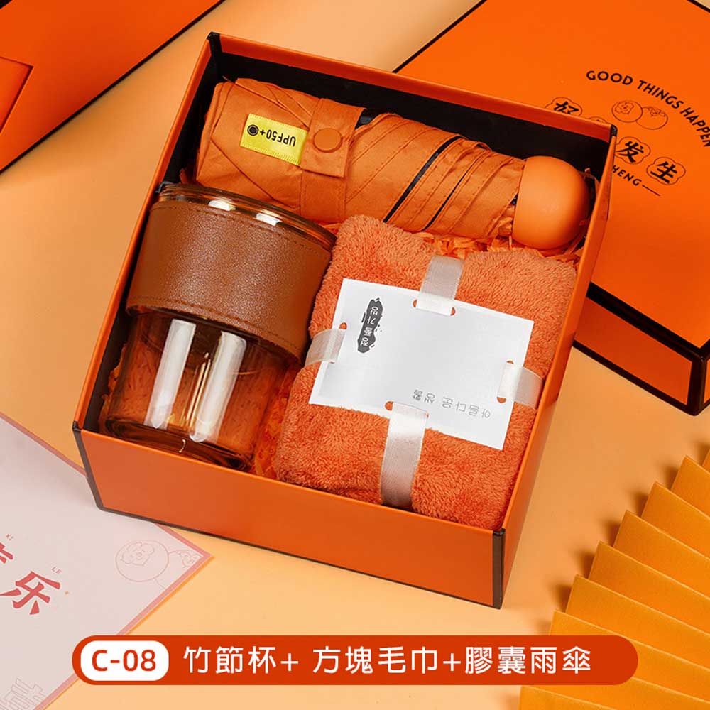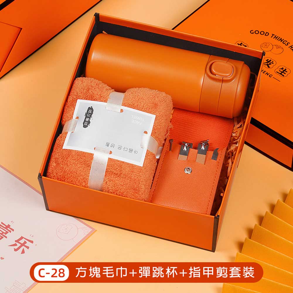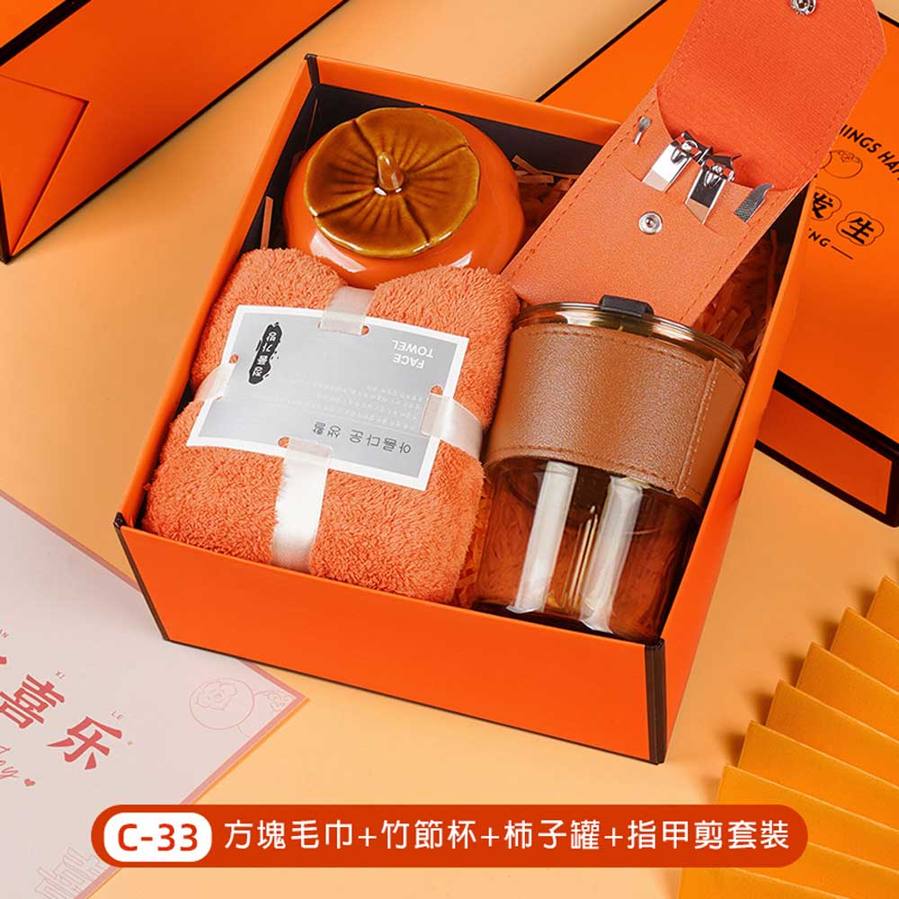毛巾+竹節杯+柿子罐+指甲剪套裝禮盒 單價250元*數量100PCS