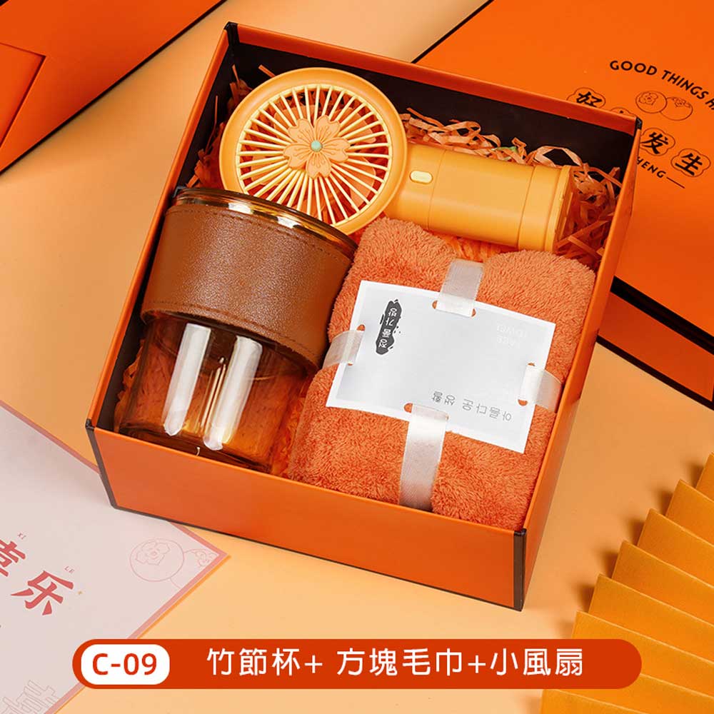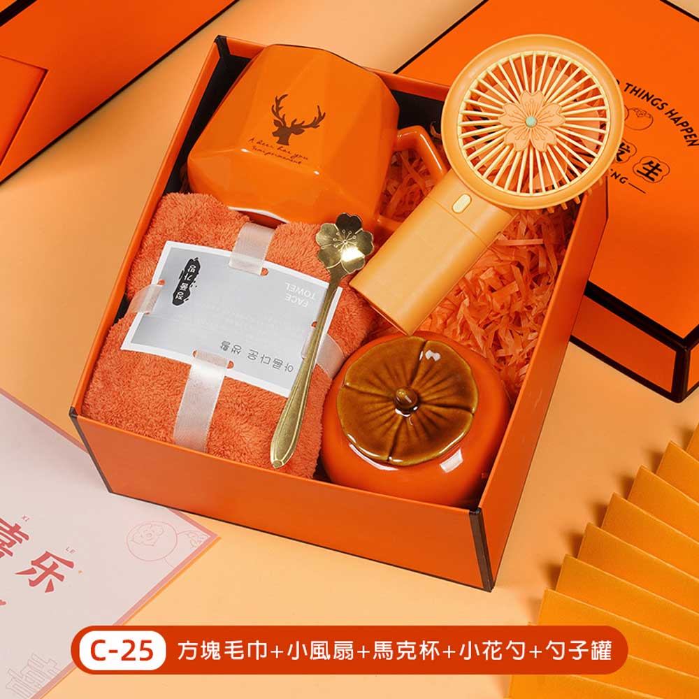 毛巾+風扇+馬克杯+小花勺+柿子罐禮盒 單價330元*數量100PCS