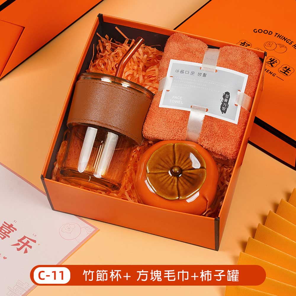竹節杯+毛巾+柿子罐禮盒 單價220元*數量100PCS