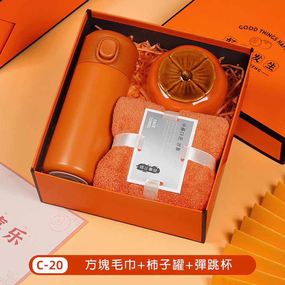 毛巾+柿子罐+彈跳杯禮盒 單價320元*數量100PCS