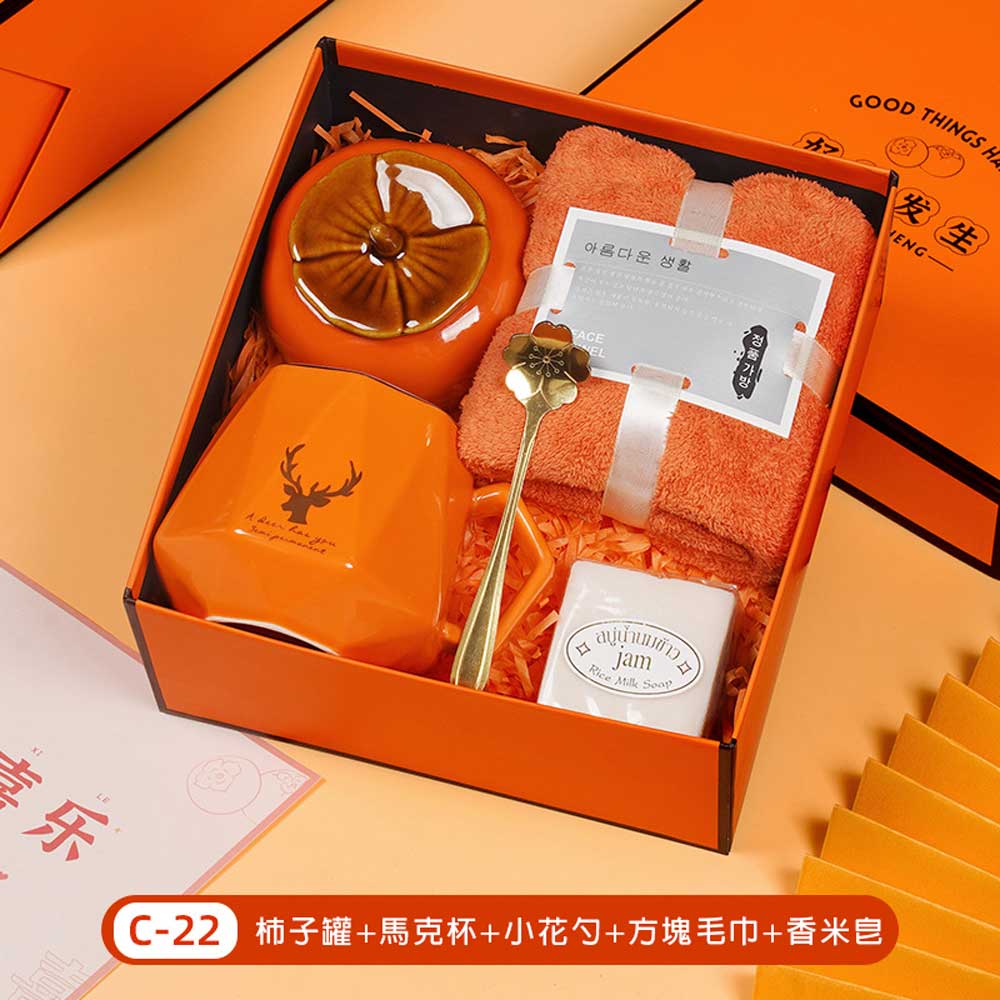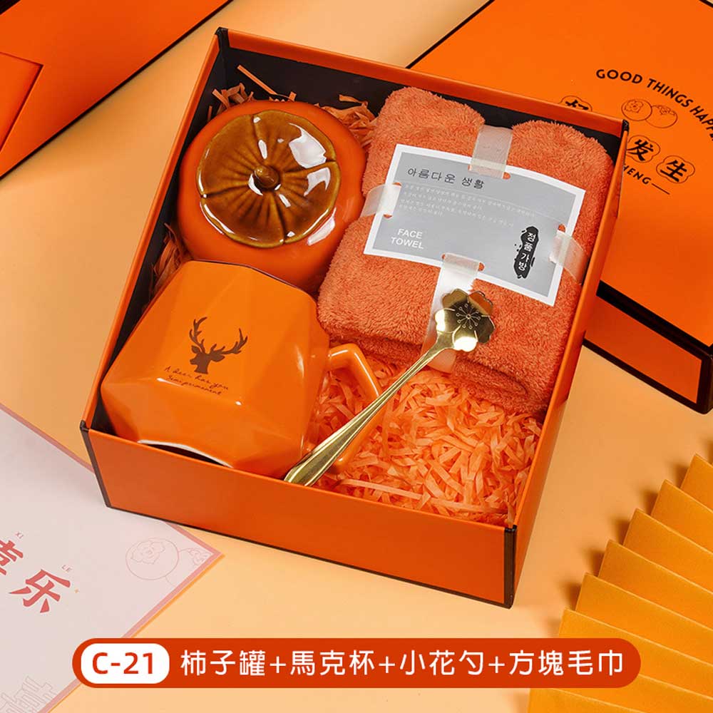 柿子罐+馬克杯+小花勺+毛巾禮盒 單價280元*數量100PCS