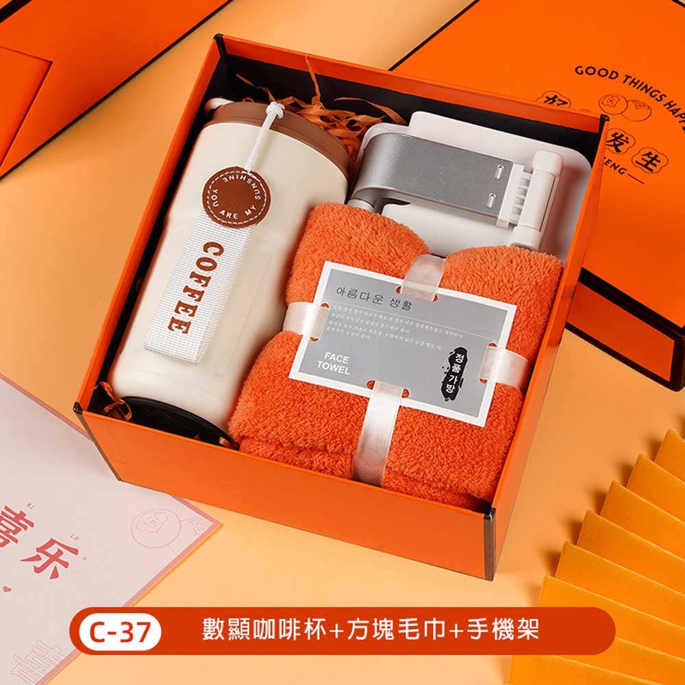 咖啡杯+方塊毛巾+手機支架禮盒 單價360元*數量100PCS
