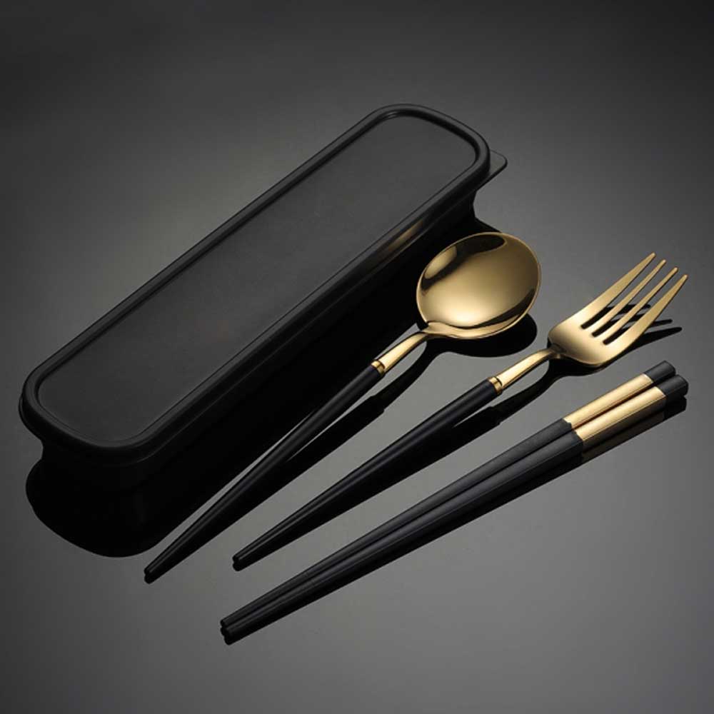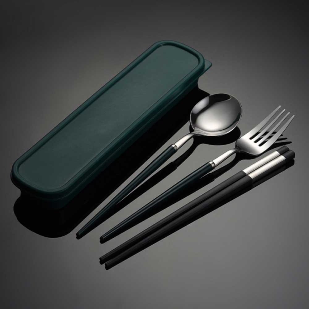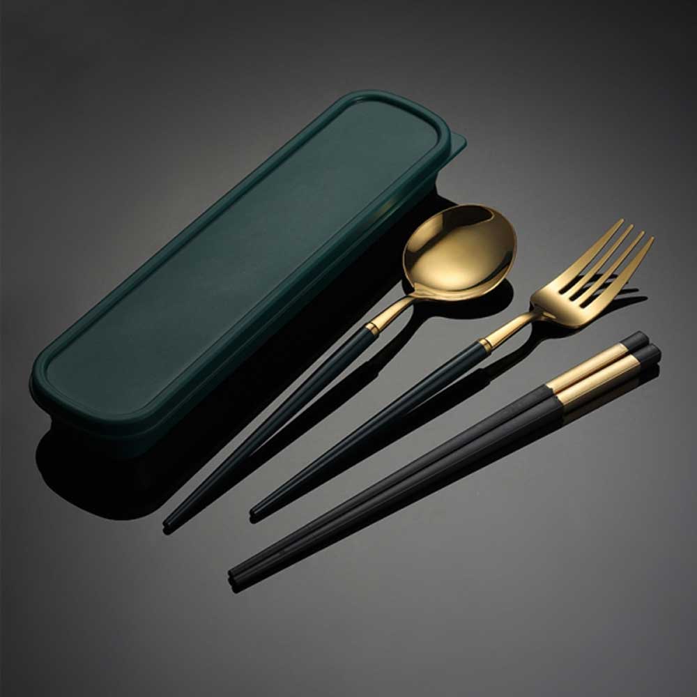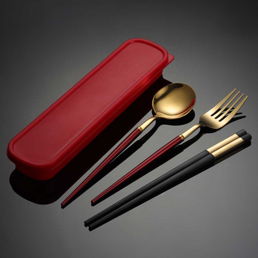 緋紅墨綠盒小奢金靜音便攜餐具組